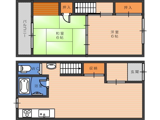 | 種別/構造 | 貸家/木造 | 所在階/階建 | 1-2階/ 2階建 |